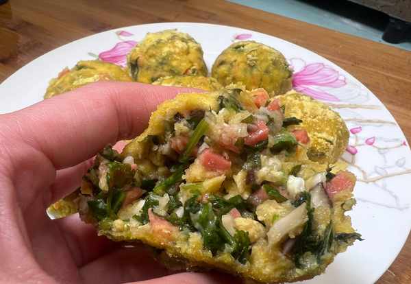 芹菜叶千万不要扔了,芹菜叶营养丰富,和香菇,鸡蛋一起做馅料,做成菜团裹一层玉米面,馅料中加入面粉,量不能太少否则菜团子不能成行,裹了玉米面粗细结合,营养更加丰富,一定要做给家人尝尝。一定要做给不喜欢吃菜的小朋友吃,馅料鲜美,看着都更加有食欲,希望您能够喜欢。