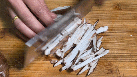7. 将芹菜叶控干水分放到案板上,切成细段,切好放入大碗中