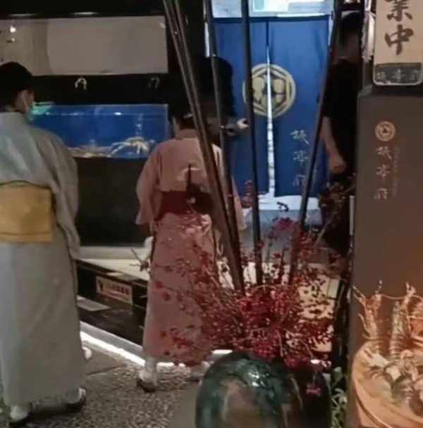 3月4日,某日料店发生了很有趣的一幕,男生和喜欢的女生约会,女生带着闺蜜一起吃饭,驻足在一家1498元一位的日料店,女生坚持选择这家店用餐,男生在门口犹豫不决,很是迟疑,但最终好像还是进去了。