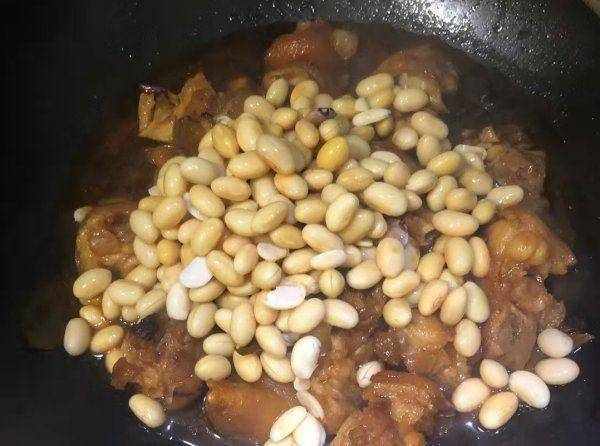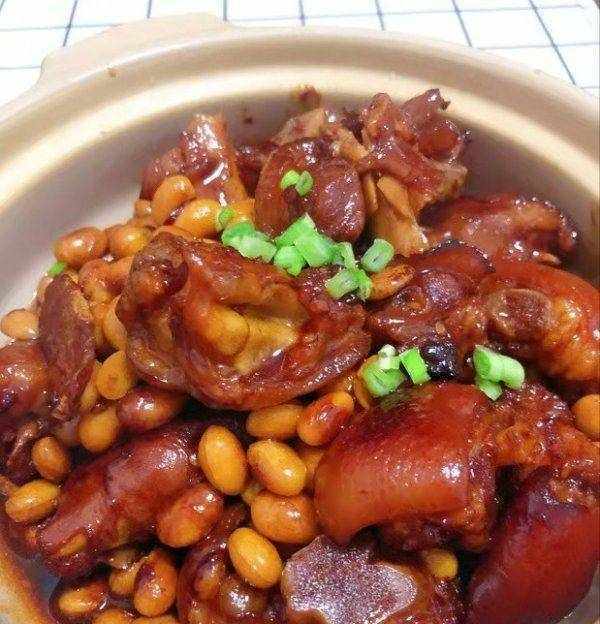 小火炖完之后,放入泡发好的黄豆,同时放入盐调味,小火炖20分钟就可以出锅了。猪蹄有慢慢的胶原蛋白,尤其是在寒冷的冬天,炖上一锅软烂的猪蹄,别提有多享受。
