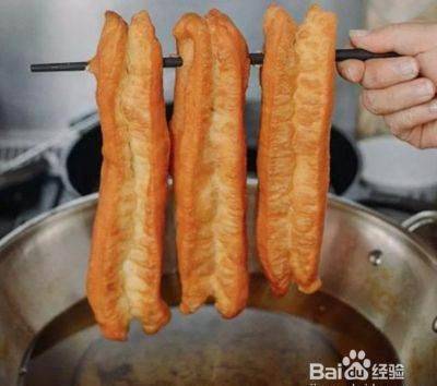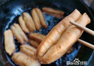 油条入锅以后,用筷子轻轻拨动油条,使油条在锅中翻滚受热均匀,这样油条的形状也会变得非常好看,膨大的也比较均匀,