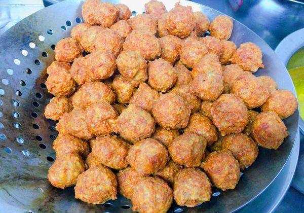 4. 油炸,油温控制很重要;初炸用温油慢炸;最后再用120度以上的高温油复炸,这样丸子的外表才会金黄酥脆,同时吃起来还不油腻。