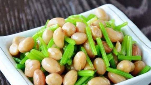 第二道、花生拌芹菜需要准备的食材有:花生粒、新鲜芹菜。首先将芹菜叶摘掉,用清水清洗干净,然后切成小段。锅中加入适量清水,放入花生和大料煮至花生熟透。将切好的芹菜段过热水焯一下,焯过之后再用凉水冲洗一下沥干水分备用。加入些许食用盐腌制一会,再把花生放入芹菜的碗里,然后加入白糖、蒸鱼豉油,、香醋、香油等调味料,搅拌均匀即可食用。这道花生拌芹菜,不仅好吃,还是一道非常不错的下酒菜,而且多吃芹菜可以加快胃部消化,可以加速体内酒精代谢,有非常好的利尿功能,把酒精通过尿液排出体内,即缓解胃部的压力,又起到了醒酒保胃饿效果。