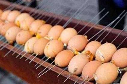 街头上,一位大叔正在一个不起眼的卖着一种“另类”小吃,远远望去还以为是烤羊肉串呢,走近才发现是鸡蛋,生意十分的火爆。