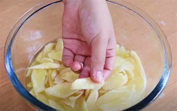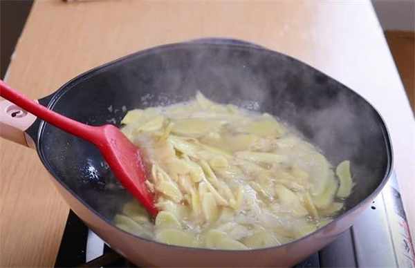 2.生姜去皮后切成片,切完之后可以多清洗几遍,这样它的辛辣味就不会那么重了。