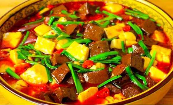 配料:豆腐、猪血、韭菜、姜、蒜、葱、小米椒、豆豉、豆瓣酱