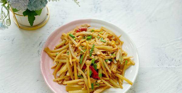 藕丝炒肉是一道家常快手小炒菜,很多人爱吃,我家就喜欢用它来卷卷饼,特别下饭。莲藕洁白如玉,炒出来清脆爽口,大人孩子都爱吃。但是也有很多朋友,莲藕入锅时还是,白白嫩嫩,等到炒好就是乌黑一锅了,到底怎么炒还能保持白嫩的同时,还脆爽呢?有的朋友说需要加白醋,还有的说炒制的时候要加水,我家炒莲藕不加水也不加醋,炒好以后照样白嫩爽口。做法并不难,只需一个小技巧,就能搞定,请往下看。
