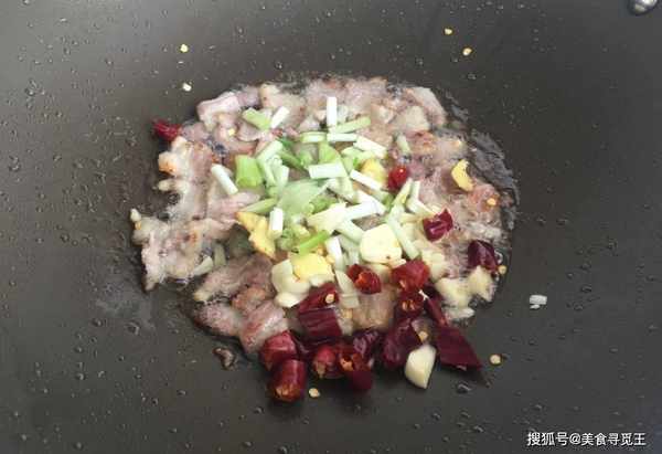 3、锅中倒少许的食用油,烧至6成热的时候,先放入五花肉,中小火慢慢煸炒出五花肉的油脂,这样炒出来的手撕包菜口感才香。