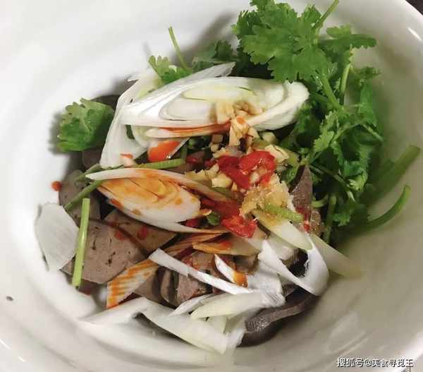 3、煮好的猪肝不要着急食用,自然晾凉后可以浸泡半天,这样更入味一些。浸泡完成后可以取出来,切成薄片,然后再准备少许的香菜、葱段和蒜末小米辣碎。
