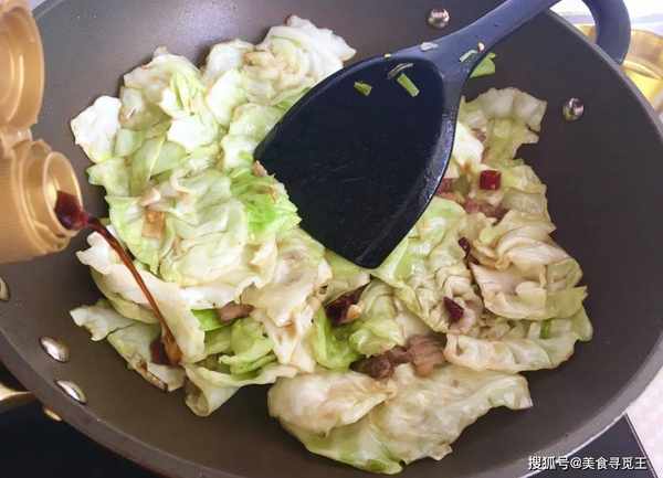 5、然后开始调味,加少许的生抽、蚝油、食盐,再煸炒1分钟左右即可出锅。如果喜欢吃口感软的包菜,可以再炒个1-2分钟,但不建议炒制的时间太长,这样就不好吃了。