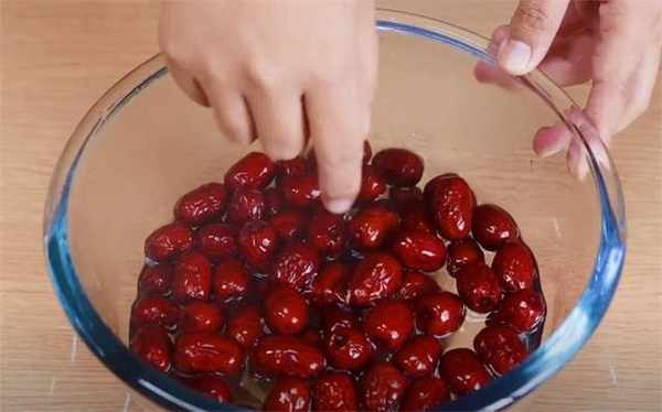 1.我们先准备一些红枣,用温热的水泡上10分钟,简单泡发。