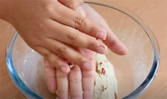 4.处理小剂子的时候直接揪一小块出来,在掌心反复的团圆。