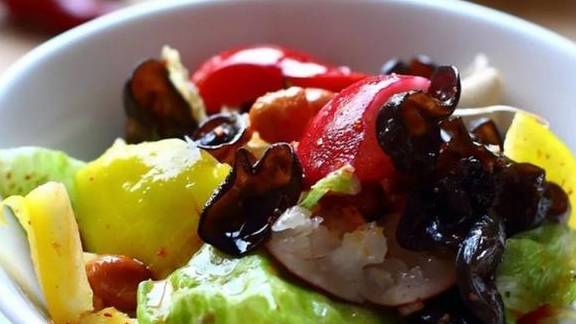 推荐三:自制什锦拌菜自制什锦拌菜准备食材:樱桃萝卜、彩椒、圆生菜、木耳、娃娃菜、熟花生米、大蒜、香醋、白糖、酱油、香油、辣椒油、盐。做法:1、樱桃萝卜用刀拍一下,木耳提前泡发好撒成小朵,娃娃菜、圆生菜洗净撕成大片,彩椒掰成大块,大蒜切末备用;2、把准备好的材料和蒜末放到一个大点容器里,加入适量酱油、辣椒油、香醋、白糖、香油、盐调拌匀后盛到盘里。