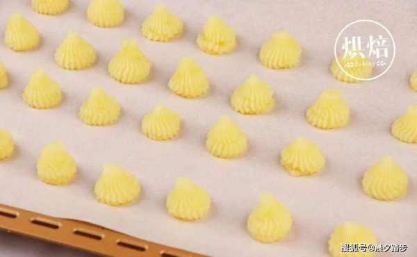 ⑤将调味好的土豆泥装入带裱花嘴的裱花袋中,在铺好油纸的烤盘上挤出一个花型。