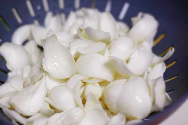 2、百合冲洗干净,层层剥开,掰成小块,再次冲洗干净。