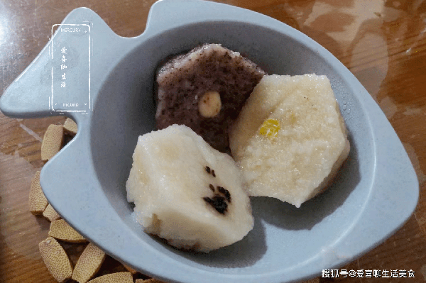 糯米糕是买来的,老公特别喜欢吃,我蒸了三块,我一块,他两块,这个糕里面有松子、桂花、红枣,香甜软糯,非常好吃,只要放在电饭煲里蒸熟即可。