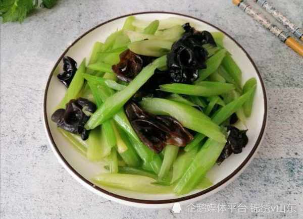 5起锅前放入芹菜段,加入盐、鸡精和少许生抽。