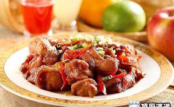 辣椒、蒜、姜爆香,加肉、调味料炒至收干,再加白醋。