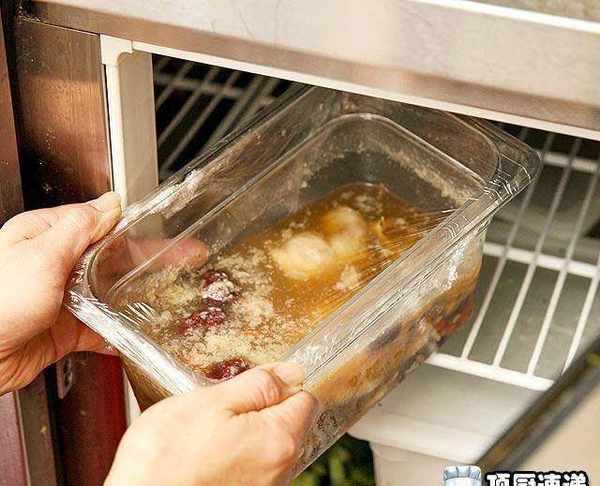 鸡腿加腐乳、蛋、酒、酱油、糖、芝麻、五香粉及胡椒粉拌匀腌1晚。