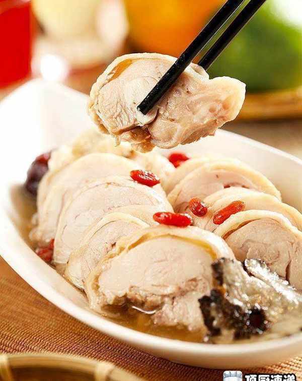 口感滑嫩的鸡肉,相当入味且酒香四溢。