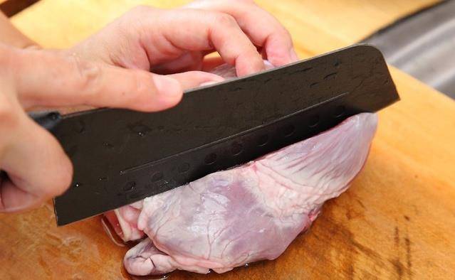 Tips:刀痕须深约1公分,如此可缩短猪心炖煮时间。