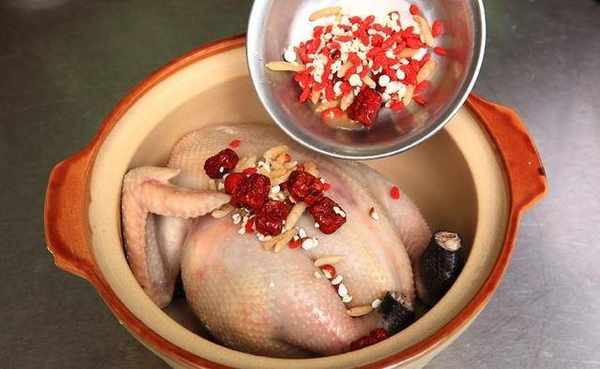 土鸡1只(约2,000克)、枸杞10克、红枣12颗、芡实10克、薏仁10克、麦门冬20克