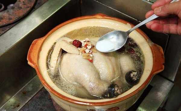 将汆烫过的鸡放入砂锅中,起锅开中火,加入步骤1的中药材及2,000cc水量,待水煮开后,转小火,炖煮2小时。