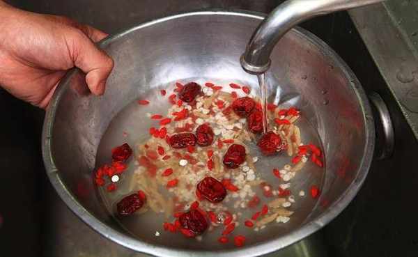 将枸杞、红枣、芡实、薏仁及麦门冬以清水洗净。