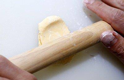 Tips:将酥皮卷起再擀成饼皮,可增加酥皮层次,擀饼皮时撒上少许面粉可避免沾黏。