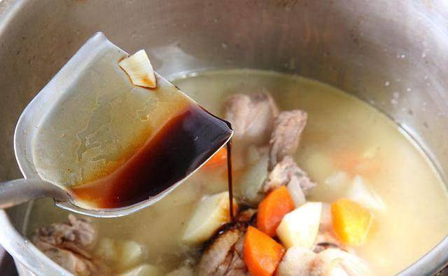 放1匙油热锅,加洋葱拌炒至稍微软化,再加萝卜、马铃薯拌炒出香气,接着加入鸡肉炒匀。