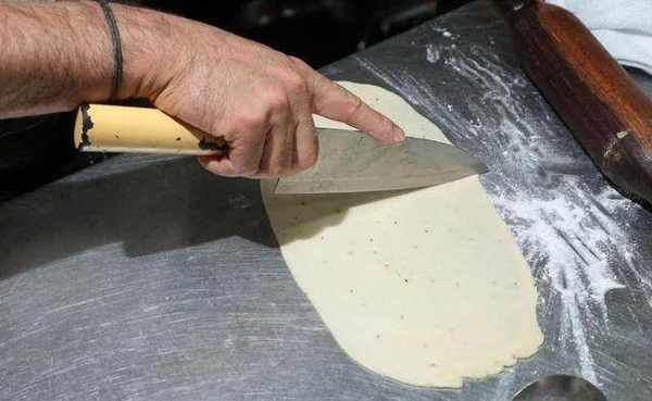 取饺皮食材拌匀,视面团硬度分次加水,至面团不黏手,静置20分钟,放冰箱发酵至少3小时,之后将面团揉成长条,分成四份左右,再擀成0.3公分厚的椭圆面皮,对切备用。