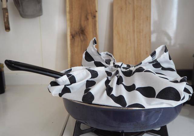 为了防止盖子凝结的水滴掉进布丁里,可以用抹布包住盖子。