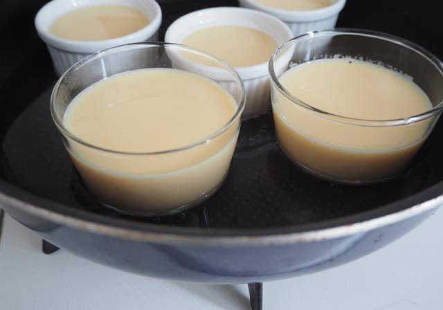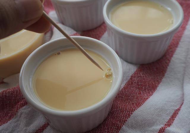 8.待到布丁表面能轻微摇晃时,就是蒸好了。冷却后在冰箱里冷却1小时以上再吃吧