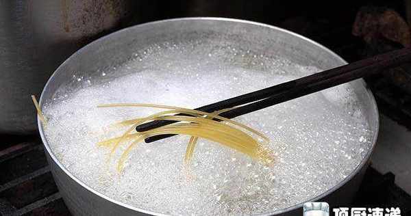 面条放入水中煮10分钟,捞起后冲冷水。