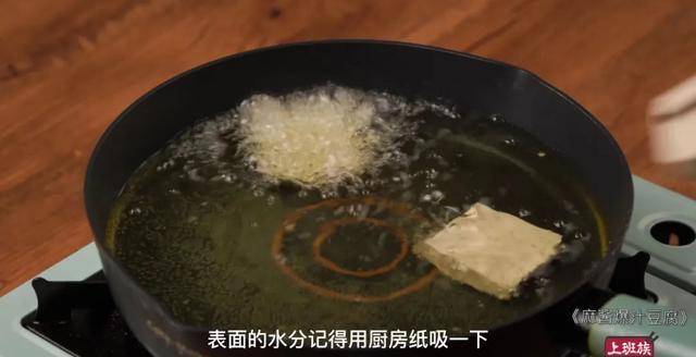 切好的豆腐直接下油锅炸,表面的水分记得用厨房纸吸一下,不爱吃裹粉的就可以试试这个!