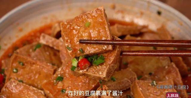炸好的豆腐裹满了酱汁,外脆里嫩,咬一口还会爆汁,这麻酱爆汁的口感不收藏后悔啊!