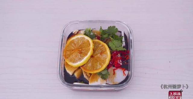 萝卜里放入蒜末、姜末、小米辣、香菜、柠檬片和调好的料汁,密封放冰箱冷藏一晚就可以开吃啦!