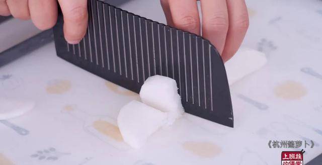 萝卜切成薄片。