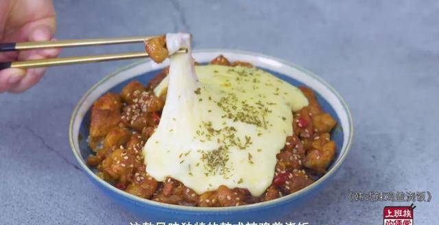 今天这个韩式辣鸡芝士盖浇饭,将吃鸡、芝士和盖浇饭三大快乐源泉结合在一起,幸福感绝对是翻了一倍又一倍!
