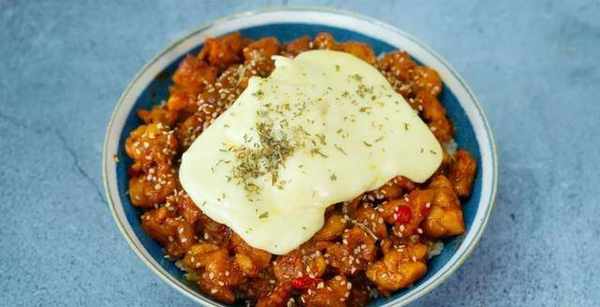 甜辣的鸡块、浓郁的酱汁、拉丝的芝士光是看一看就流口水,做一碗也不需要花太多时间,特别适合上班族。
