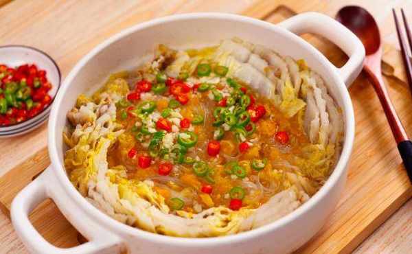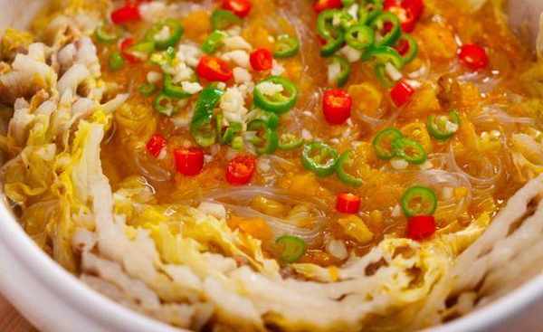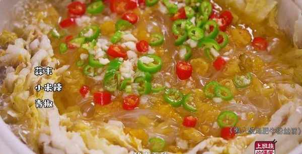 大白菜、肥牛片、金针菇龙口粉丝、蒜末、小米辣、青椒