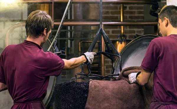 这些发酵后的果渣会被立刻转移到蒸馏厂进行压榨,这个过程需要十分迅速,这样做是为了保留其中富含的酒精和芳香物质,然后进行蒸馏。