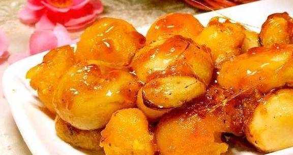 而汤圆大多数人的做法就是煮了,但今天教大家一种汤圆的新吃法:琉璃汤圆,汤圆炸制金黄在裹上糖浆就是啦,而拔出丝来就是拔丝汤圆,咬一口外酥里嫩,香甜可口,很受小朋友的欢迎呢!
