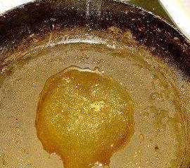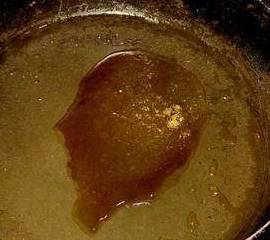 等糖慢慢的变成淡褐色糖浆,再熬一会等颜色变深,大约几秒钟,一定要盯住哈!