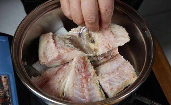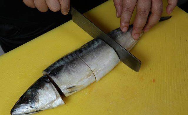 先将鲭鱼洗净、处理后,头、尾去除不用,中间部分切3段;再将白萝卜先切片,每片再对切成4份成类似正方形状。