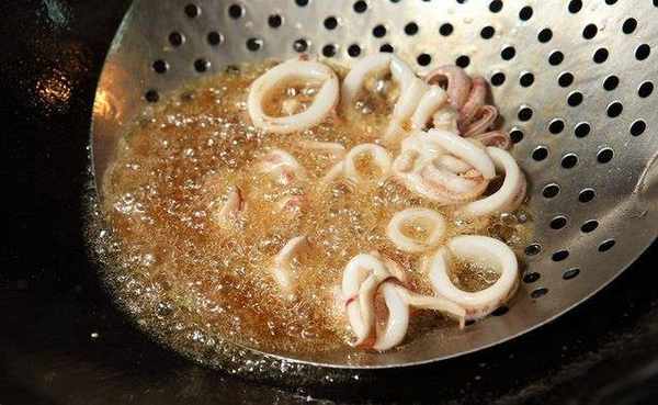小卷切块。起锅开大火,倒入盖过小卷的油量,待油温为摄氏180度时,放入小卷油炸,炸至小卷收缩变硬捞起。