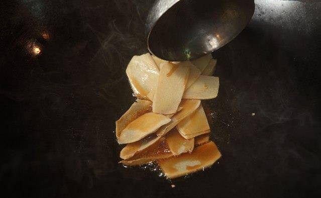 另起锅开小火,倒入麻油与老姜片煸过,再加入蒜头、辣椒段与葱段爆香,炒至葱香味飘出。
