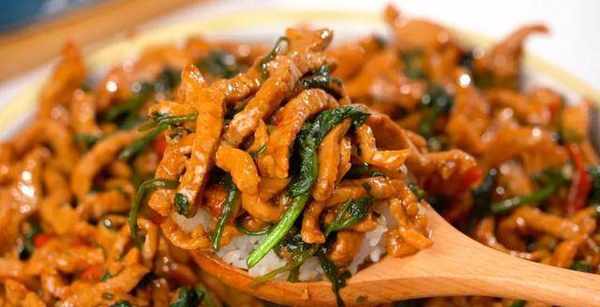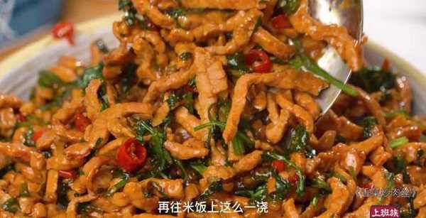这菜吃的就是一个嫩,讲究的就是一个快,浓郁的酱汁包裹着肉丝,再往米饭上这么一浇,三碗米饭轻松见底!