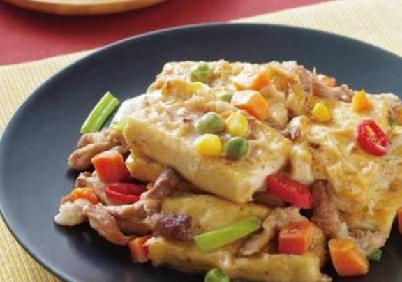 鸡蛋煎豆腐材料:鸡蛋1个,豆腐1盒,葱花1根,橄榄油少许,盐过量做法:1、豆腐切生长方形的片儿,鸡蛋打散加一点点盐,小葱切成葱花。2、将豆腐片放入蛋液里略微腌制使其入味。3、平底锅烧热,少油,将裹满蛋液的豆腐一片一片放进锅里,中小火4、煎至两面金黄,撒上一点葱花即可。一个鸡蛋所含的热量,相当于半个苹果或半杯牛奶的热量,但是它还拥有8%的磷、4%的锌、4%的铁、12.6%的蛋白质、6%的维生素D、3%的维生素E、6%的维生素A、2%的维生素B、5%的维生素B2、4%的维生素B6。这些营养都是人体必不可少的,它们起着极其重要的作用,如修复人体组织、形成新的组织、消耗能量和参与复杂的新陈代谢过程等。