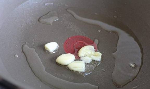 2.起油锅,加入少许油烧热后加入拍碎的大蒜瓣